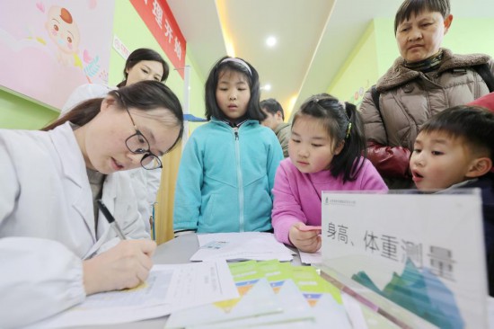3月15日,在浙江省湖州市德清縣洛舍鎮(zhèn)衛(wèi)生院,醫(yī)護人員在登記兒童診療信息。 新華社發(fā)(謝尚國攝)