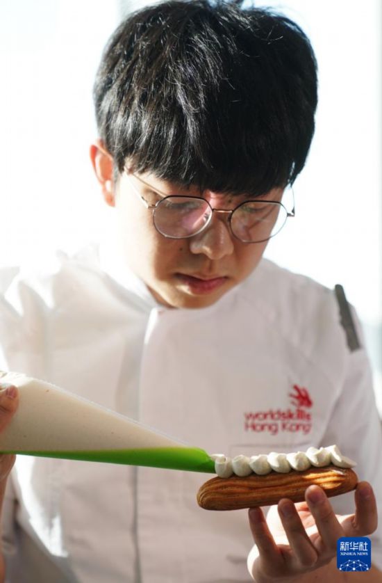 在香港國際廚藝學(xué)院西點(diǎn)廚房,姚浩民在制作西點(diǎn)(1月15日攝)。新華社發(fā)(王申攝)