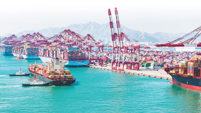 山東港口青島港前灣集裝箱碼頭。