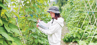 李經(jīng)緯在調(diào)查種質(zhì)資源的農(nóng)藝性狀。