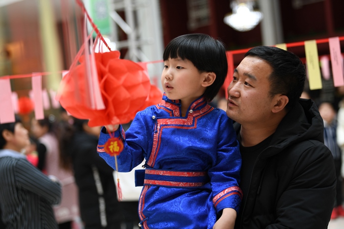 2月17日,市民在內(nèi)蒙古圖書館猜燈謎。當日,為慶祝我國傳統(tǒng)節(jié)日元宵節(jié),內(nèi)蒙古圖書館舉行“書香慶元宵”主題活動,現(xiàn)場共準備了蒙漢文燈謎1300余 條,通過 猜燈 謎、繪花 燈、包元宵等活動,讓參與者樂在其中,體驗傳統(tǒng)節(jié)日習俗。