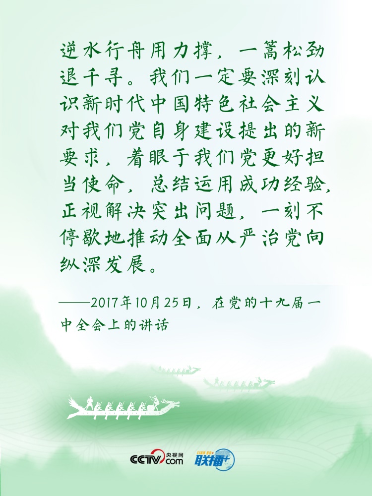 過端午,賽龍舟。龍舟這項(xiàng)傳統(tǒng)運(yùn)動(dòng),象征著中華民族的拼搏、堅(jiān)韌、團(tuán)結(jié),承載著深植在民族基因里的愛國(guó)主義之魂?!爸邸弊肿怨乓詠碓谥腥A傳統(tǒng)文化中都有著深刻寓意。“依水行舟,忠誠(chéng)為民”“逆水行舟,不進(jìn)則退”......習(xí)近平總書記曾多次以“舟”為喻闡釋思想,寄情言志。央視網(wǎng)《聯(lián)播+》特進(jìn)行梳理,讓我們沿著總書記指引的方向,團(tuán)結(jié)奮進(jìn),砥礪前行?! ?/p>