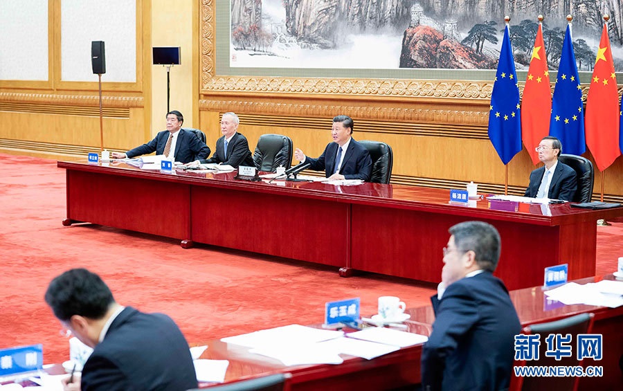 新華社北京9月14日電國家主席習(xí)近平14日晚在北京同歐盟輪值主席國德國總理默克爾、歐洲理事會主席米歇爾、歐盟委員會主席馮德萊恩共同舉行會晤,會晤以視頻方式舉行。中德歐領(lǐng)導(dǎo)人就中歐關(guān)系深入交換意見,為下階段中歐關(guān)系規(guī)劃方向,確定重點(diǎn)領(lǐng)域,一致同意加強(qiáng)溝通協(xié)調(diào)合作,確保今后中歐之間一系列重大政治議程取得成功,深化互信,實(shí)現(xiàn)互利共贏,堅持維護(hù)多邊主義,共同應(yīng)對全球性挑戰(zhàn),推動中歐關(guān)系邁向更高水平。中歐雙方宣布簽署《中歐地理標(biāo)志協(xié)定》,確認(rèn)加快中歐投資協(xié)定談判,實(shí)現(xiàn)年內(nèi)完成談判的目標(biāo)。中歐決定建立環(huán)境與氣候高層對話和數(shù)字領(lǐng)域高層對話,打造中歐綠色合作伙伴、數(shù)字合作伙伴關(guān)系。