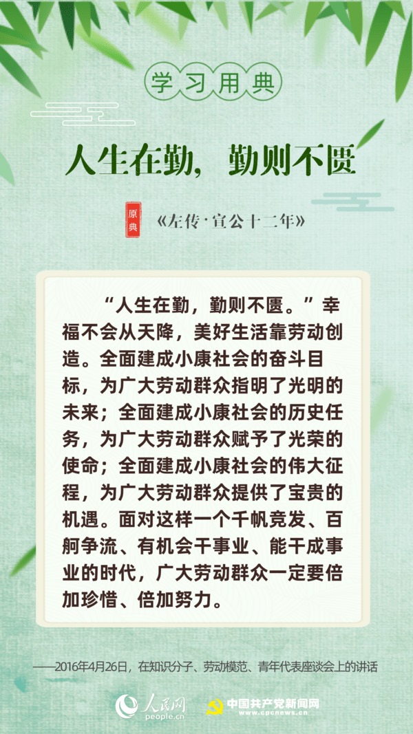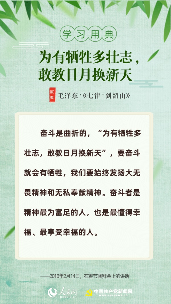 【編者按】“志不求易者成,事不避難者進。”近日,習近平總書記給中國石油大學(北京)克拉瑪依校區(qū)畢業(yè)生回信,對廣大高校畢業(yè)生提出殷切期望。“人生在勤,勤則不匱”“積土而為山,積水而為?!薄陙?,習近平多次引用詩句典故,激勵包含廣大青年在內的全黨全國各族人民拼搏奮進、埋頭苦干。正值“戰(zhàn)疫”“戰(zhàn)貧”關鍵時刻,人民網(wǎng)·中國共產(chǎn)黨新聞網(wǎng)與您一起回顧習近平講話中關于“奮斗”的10個名句。