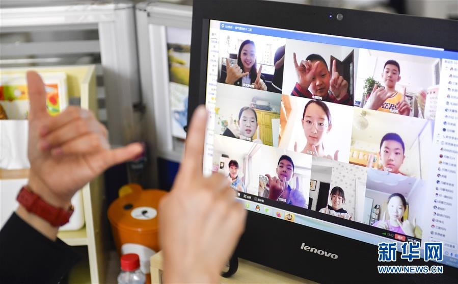 位于吉林省長春市的東北師范大學(xué)第二附屬小學(xué)6年級學(xué)生參加“云班會(huì)”(5月29日攝)。新華社記者許暢攝