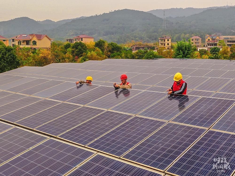 △江西吉安黃崗村,供電公司工人正在檢修“光伏+取暖”設備,保障村民溫暖過冬。