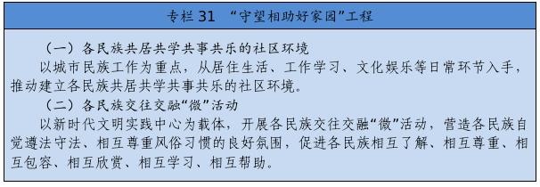 從居住生活、工作學(xué)習(xí)、文化娛樂等日常環(huán)節(jié)入手,積極營造各民族共居共學(xué)共事共樂的社會條件,開展各族群眾交流、培養(yǎng)、融洽感情的工作,形成密不可分的共同體。鼓勵各族群眾在民族地區(qū)和其他地區(qū)、城市和鄉(xiāng)村有序流動。做好城市民族工作,讓城市更好接納少數(shù)民族群眾、少數(shù)民族群眾更好融入城市社區(qū)。大力推進(jìn)農(nóng)村牧區(qū)現(xiàn)代化,加快補(bǔ)齊基礎(chǔ)設(shè)施和基本公共服務(wù)短板,不斷滿足各族群眾的美好生活需要,確保實(shí)現(xiàn)現(xiàn)代化一個民族也不能少。