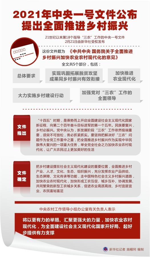 文件指出,“十四五”時(shí)期,是乘勢(shì)而上開啟全面建設(shè)社會(huì)主義現(xiàn)代化國(guó)家新征程、向第二個(gè)百年奮斗目標(biāo)進(jìn)軍的第一個(gè)五年。民族要復(fù)興,鄉(xiāng)村必振興。黨中央認(rèn)為,新發(fā)展階段“三農(nóng)”工作依然極端重要,須臾不可放松,務(wù)必抓緊抓實(shí)。要堅(jiān)持把解決好“三農(nóng)”問(wèn)題作為全黨工作重中之重,把全面推進(jìn)鄉(xiāng)村振興作為實(shí)現(xiàn)中華民族偉大復(fù)興的一項(xiàng)重大任務(wù),舉全黨全社會(huì)之力加快農(nóng)業(yè)農(nóng)村現(xiàn)代化,讓廣大農(nóng)民過(guò)上更加美好的生活。