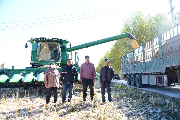 圖為吉林省松原市大洼鎮(zhèn)民樂(lè)村春峰種植專業(yè)合作社秋收?qǐng)鼍啊?新華社記者徐子恒攝)