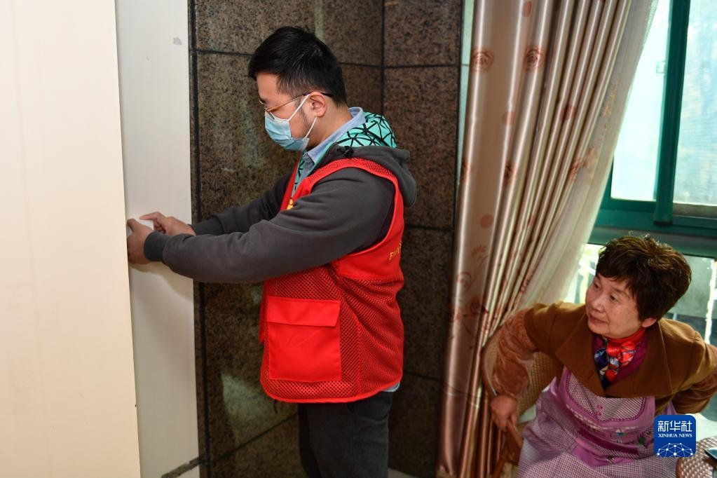 智慧養(yǎng)老綜合服務(wù)平臺(tái)的工作人員(左)在浙江省湖州市吳興區(qū)愛(ài)山街道龍庭小區(qū)一位居民家中安裝“一鍵幫助”服務(wù)設(shè)備(2021年11月17日攝)?!耙绘I幫助”服務(wù)是愛(ài)山街道數(shù)字化居家養(yǎng)老服務(wù)項(xiàng)目之一。老人需要幫助時(shí)輕輕按下,智慧養(yǎng)老綜合服務(wù)平臺(tái)的工作人員就能第一時(shí)間獲取信息,聯(lián)系老人了解其需求,提供相應(yīng)服務(wù)。目前,愛(ài)山街道70周歲以上老人已實(shí)現(xiàn)“一鍵幫助”系統(tǒng)全覆蓋。新華社記者黃宗治攝