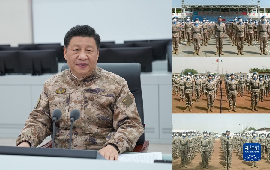 隨后,習(xí)近平同中部戰(zhàn)區(qū)海外維和分隊進行視頻通話。來自維和步兵營、工兵分隊、醫(yī)療分隊、直升機分隊的同志們整齊列隊,依次向習(xí)近平報告。習(xí)近平向他們,并向我軍正在海外執(zhí)行任務(wù)的全體官兵表示慰問。習(xí)近平強調(diào),要忠實履行維和使命,為維護世界和平貢獻更多中國力量,向世界展示中國軍隊良好形象。維和任務(wù)區(qū)環(huán)境復(fù)雜,要注意加強安全防范,搞好疫情防控。