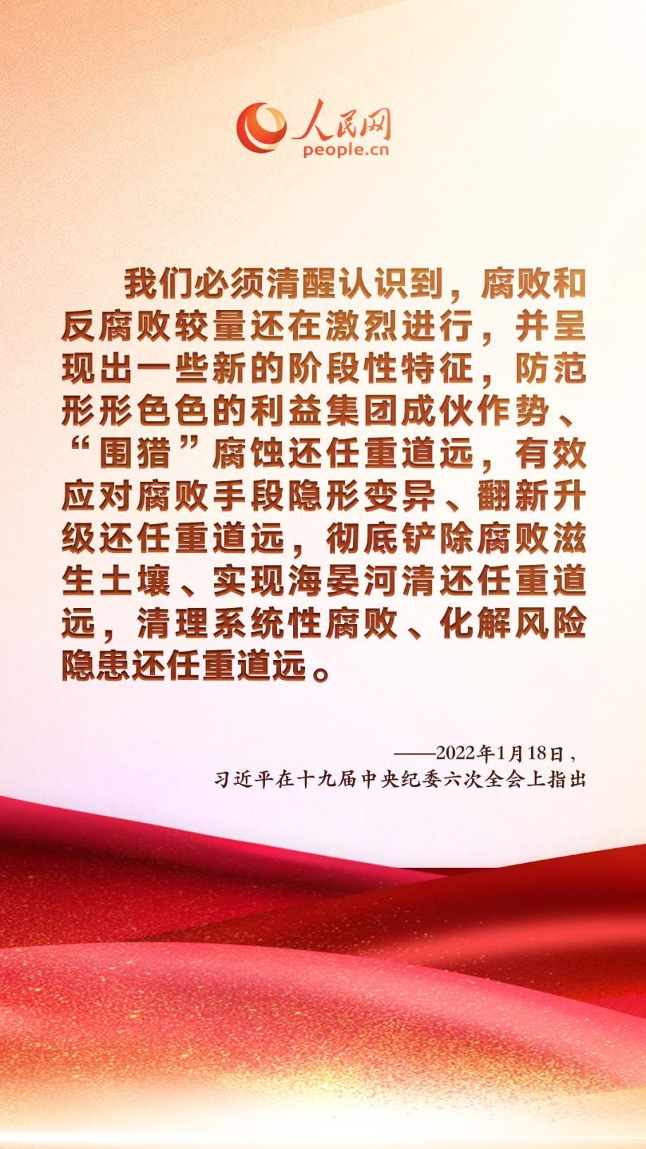 “要保持反腐敗政治定力,不斷實(shí)現(xiàn)不敢腐、不能腐、不想腐一體推進(jìn)的戰(zhàn)略目標(biāo)?!敝泄仓醒肟倳?、國(guó)家主席、中央軍委主席習(xí)近平在十九屆中央紀(jì)委六次全會(huì)上發(fā)表重要講話,深刻總結(jié)新時(shí)代黨的自我革命的成功實(shí)踐,深刻闡述全面從嚴(yán)治黨取得的歷史性、開創(chuàng)性成就,產(chǎn)生的全方位、深層次影響,對(duì)堅(jiān)持不懈把全面從嚴(yán)治黨向縱深推進(jìn)、迎接黨的二十大勝利召開作出戰(zhàn)略部署。