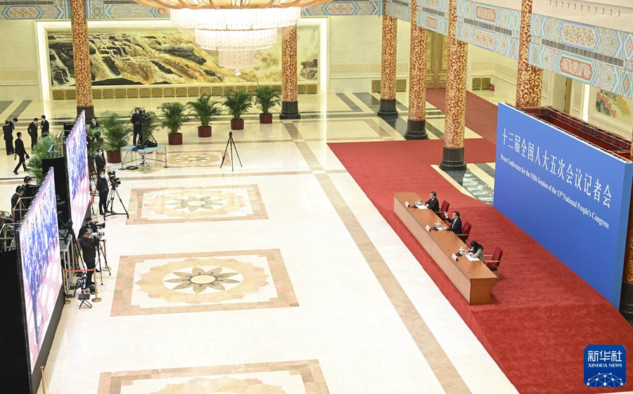 記者會采用網(wǎng)絡(luò)視頻形式進(jìn)行,主會場設(shè)在人民大會堂三樓金色大廳,分會場設(shè)在梅地亞兩會新聞中心。記者會歷時約130分鐘。