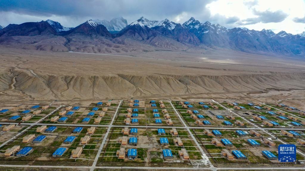 這是在新疆塔什庫爾干塔吉克自治縣縣城附近拍攝的塔提庫力易地扶貧搬遷安置點(diǎn)(2019年7月1日攝,無人機(jī)照片)。新華社記者 胡虎虎 攝