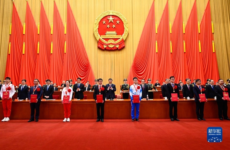 韓正宣讀《中共中央、國務院關于表彰北京冬奧會、冬殘奧會突出貢獻集體和突出貢獻個人的決定》。決定指出,為隆重表彰先進典型,激勵全黨全國各族人民為全面建設社會主義現(xiàn)代化國家而努力奮斗,黨中央、國務院決定,授予國家速滑館場館運行團隊等148個集體“北京冬奧會、冬殘奧會突出貢獻集體”稱號;授予蘇翊鳴等147名同志、追授鄧小嵐同志“北京冬奧會、冬殘奧會突出貢獻個人”稱號。