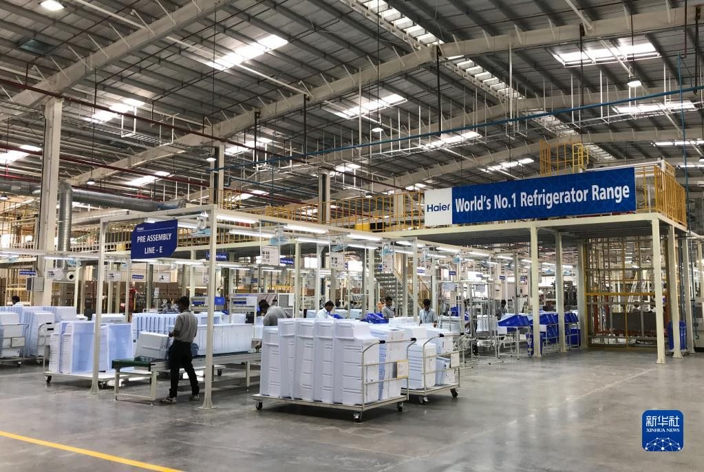 2017年11月16日,在印度浦那市,工人在中國海爾集團工業(yè)園廠房內(nèi)工作。新華社記者張興軍攝