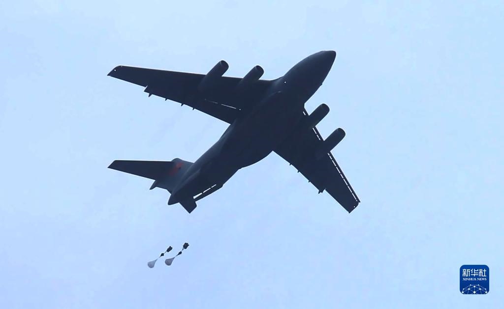 中國(guó)空軍大型運(yùn)輸機(jī)運(yùn)-20與空降兵部隊(duì)聯(lián)合開(kāi)展空降空投訓(xùn)練(資料照片)。新華社發(fā)