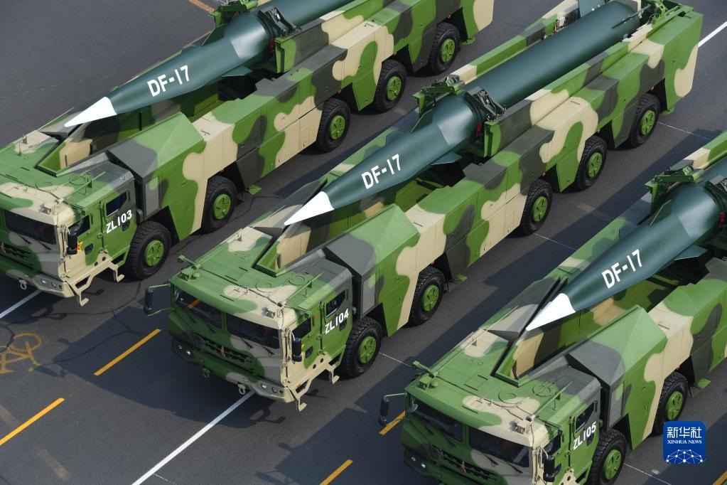 2019年10月1日上午,慶祝中華人民共和國(guó)成立70周年大會(huì)在北京天安門(mén)廣場(chǎng)隆重舉行。這是東風(fēng)-17常規(guī)導(dǎo)彈方隊(duì)。新華社記者潘昱龍攝