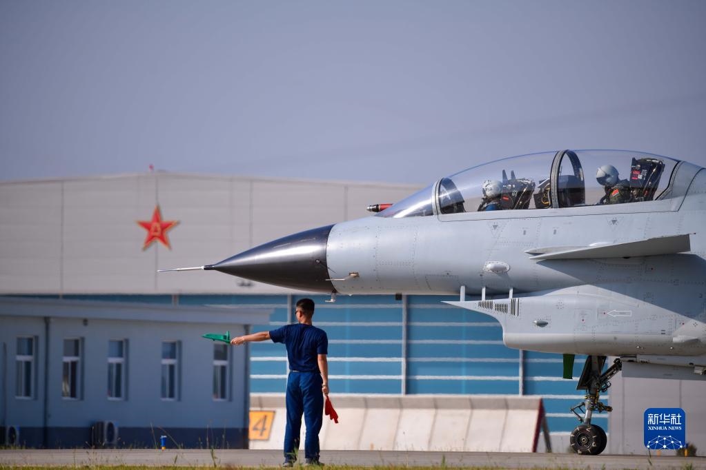 在空軍石家莊飛行學(xué)院某旅機(jī)場(chǎng),空軍首批三代機(jī)飛行學(xué)員駕駛首批列裝空軍院校的殲-10戰(zhàn)機(jī)準(zhǔn)備起飛(2021年9月10日攝)。新華社發(fā)(李敏攝)
