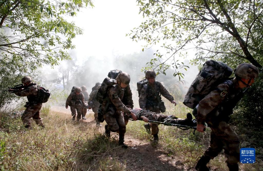 無(wú)錫聯(lián)勤保障中心第910醫(yī)院將野戰(zhàn)醫(yī)療隊(duì)拉到閩南某山區(qū),在陌生地域開(kāi)展實(shí)戰(zhàn)化衛(wèi)勤訓(xùn)練(2022年1月4日攝)。新華社發(fā)(巴濤攝)