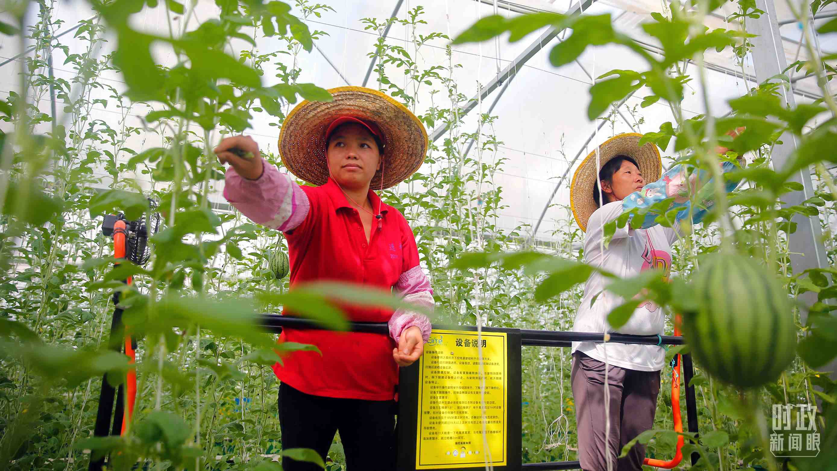 △廣東清遠連樟村村民正在現(xiàn)代農(nóng)業(yè)科技示范園溫室大棚內(nèi)勞作。(圖/視覺中國)