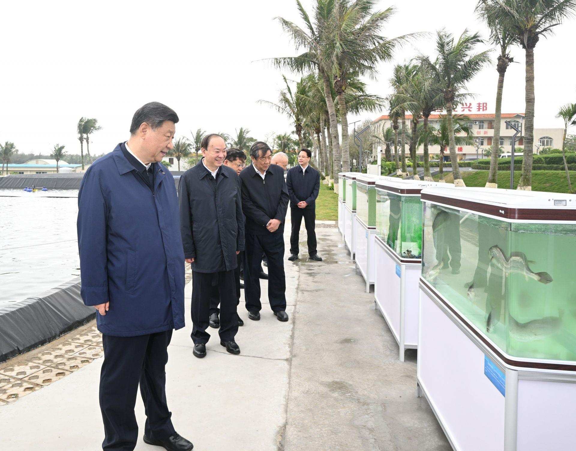 △2023年4月10日,習(xí)近平總書(shū)記在廣東湛江國(guó)家863計(jì)劃項(xiàng)目海水養(yǎng)殖種子工程南方基地考察調(diào)研。