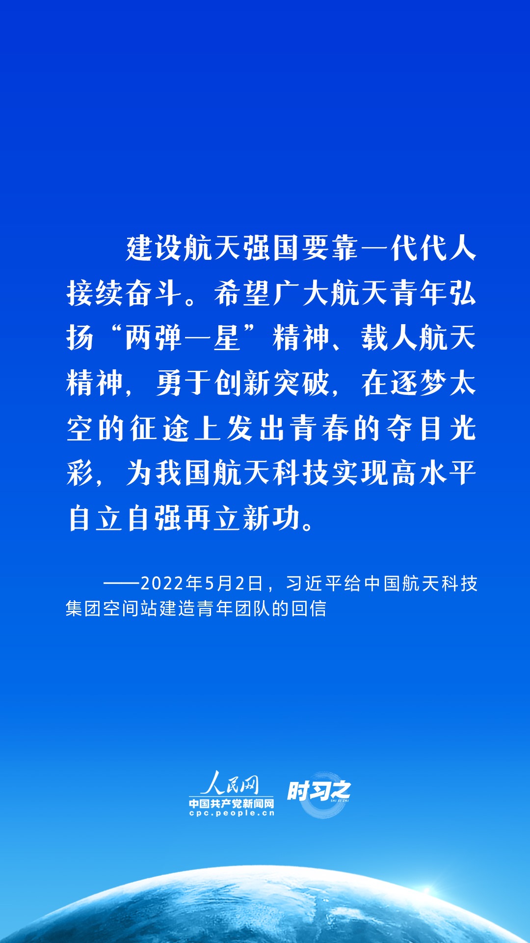 航天夢是強國夢的重要組成部分。黨的十八大以來,習(xí)近平總書記高度重視我國航天事業(yè)發(fā)展,在不同場合,頻頻提及航天精神,并不斷注入新的時代內(nèi)涵,激勵中國航天以勃發(fā)之氣,巡天探宇叩問蒼穹,向著建設(shè)航天強國的目標勇毅前行。