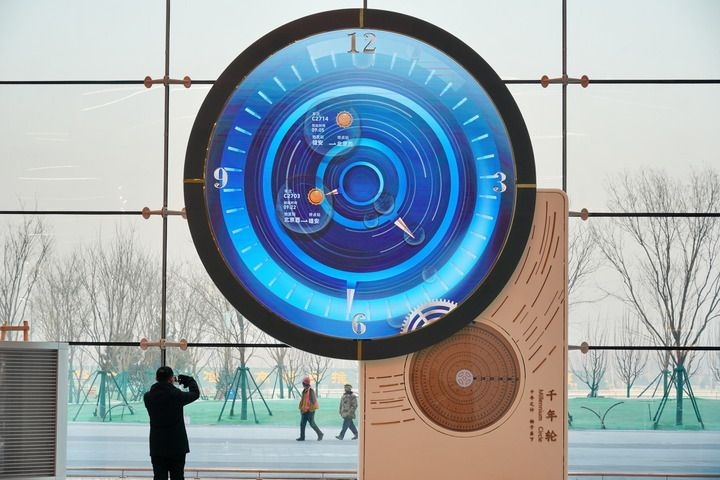 雄安站候車廳,一座“千年輪”吸引著往來旅客的目光。它的起始日期被設(shè)定為2017年4月1日——“雄安”第一次被公眾知曉的日子?!扒贻啞钡牡鬃?,鐫刻著8個(gè)金色大字——“千年之計(jì) 始于當(dāng)下”。齒輪不停地轉(zhuǎn)動(dòng),記錄下歷史前進(jìn)的軌跡。