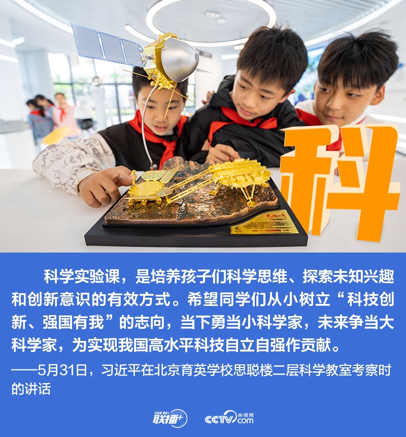 5月31日,在“六一”國(guó)際兒童節(jié)到來(lái)之際,習(xí)近平總書記專程來(lái)到北京育英學(xué)校,和小朋友們共慶“六一”兒童節(jié)。他走進(jìn)校史館、科學(xué)教室,來(lái)到籃球場(chǎng)、學(xué)生農(nóng)場(chǎng)等地看望慰問(wèn)師生,向全國(guó)廣大少年兒童祝賀節(jié)日。