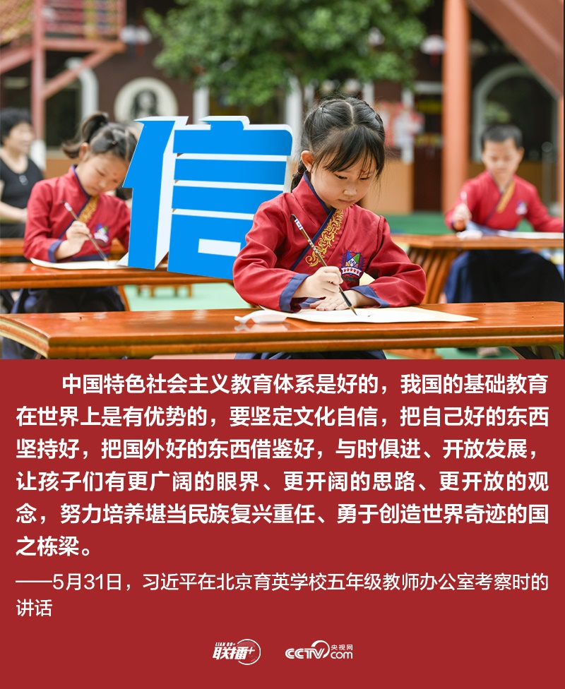 “新時(shí)代中國(guó)兒童應(yīng)該是有志向、有夢(mèng)想,愛學(xué)習(xí)、愛勞動(dòng),懂感恩、懂友善,敢創(chuàng)新、敢奮斗,德智體美勞全面發(fā)展的好兒童。”考察中,總書記對(duì)新時(shí)代中國(guó)兒童提出殷殷期望,勉勵(lì)孩子們立志為強(qiáng)國(guó)建設(shè)、民族復(fù)興而讀書,不負(fù)家長(zhǎng)期望,不負(fù)黨和人民期待。