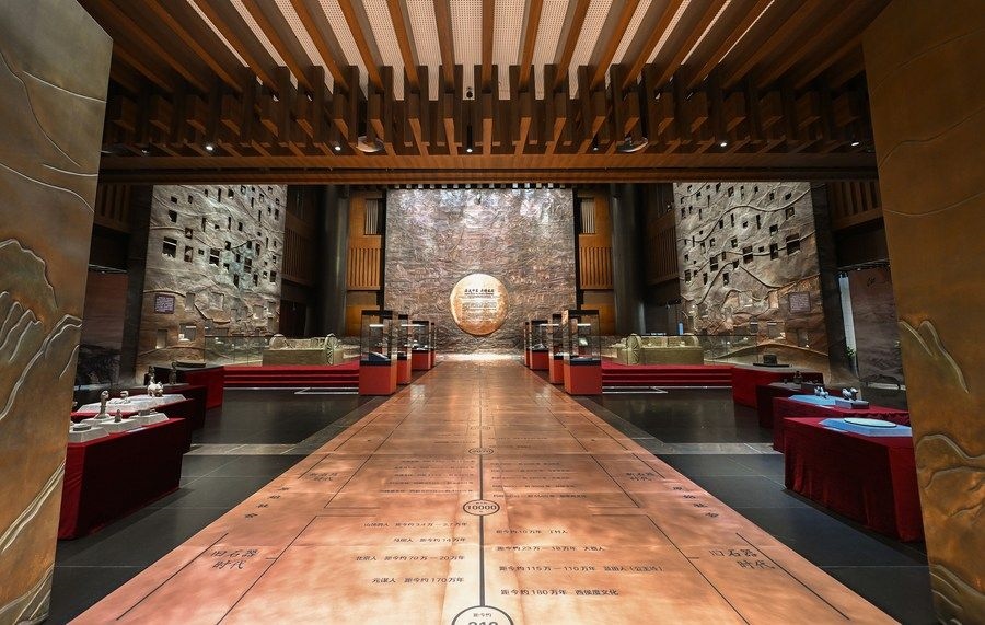 習近平走進院內的中國考古博物館,先后參觀文明起源和宅茲中國專題展,了解新石器時代和夏商周時期重大考古發(fā)現(xiàn),并不時詢問相關研究工作進展。