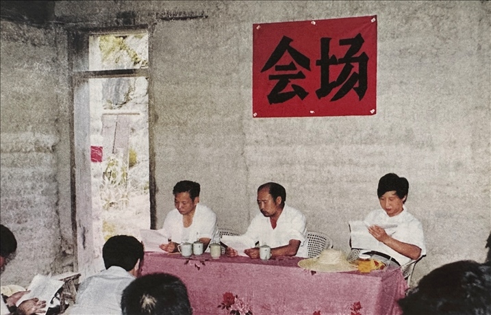 △1989年7月19日,習(xí)近平在福建壽寧縣下黨鄉(xiāng)調(diào)研并召開現(xiàn)場(chǎng)辦公會(huì)。會(huì)場(chǎng)設(shè)在小學(xué)里,臺(tái)上是一張桌子、三把椅子,鋪在桌上的是村民從家里拿來的床單。