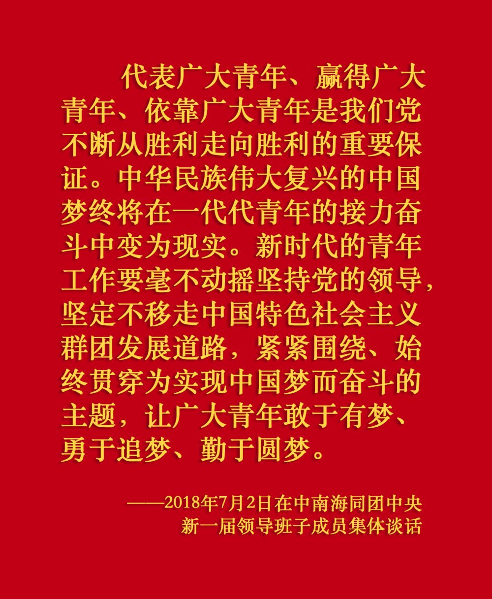 在新的征程上,如何更好把青年團結(jié)起來、組織起來、動員起來,為實現(xiàn)第二個百年奮斗目標(biāo)、實現(xiàn)中華民族偉大復(fù)興的中國夢而奮斗,是新時代中國青年運動和青年工作必須回答的重大課題。