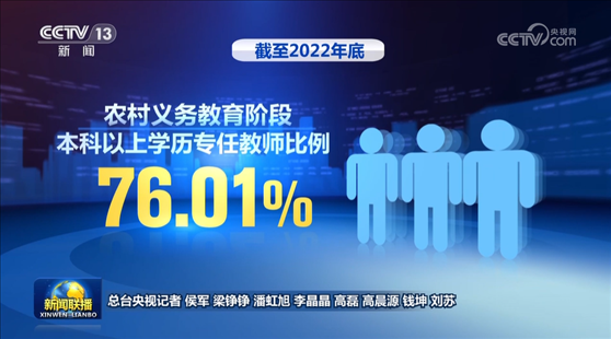 強教必先強師。黨的十八大以來,以習近平同志為核心的黨中央高度重視教師隊伍建設(shè),中國特色教師教育體系形成新局面,教師隊伍素質(zhì)不斷提升,結(jié)構(gòu)不斷優(yōu)化。數(shù)據(jù)顯示,截至2022年底,我國各級各類專任教師達1880.36萬人,全國義務教育階段本科以上學歷專任教師比例為81.02%,其中,農(nóng)村義務教育階段本科以上學歷專任教師比例為76.01%。新征程上,大家表示,要全面落實立德樹人根本任務,樹立“躬耕教壇、強國有我”的志向和抱負,培養(yǎng)更多德智體美勞全面發(fā)展的社會主義建設(shè)者和接班人。