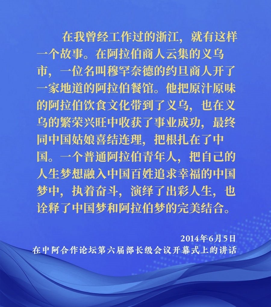 2014年6月5日,中阿合作論壇第六屆部長級(jí)會(huì)議在北京人民大會(huì)堂開幕。習(xí)近平出席開幕式并發(fā)表題為《弘揚(yáng)絲路精神,深化中阿合作》的講話。