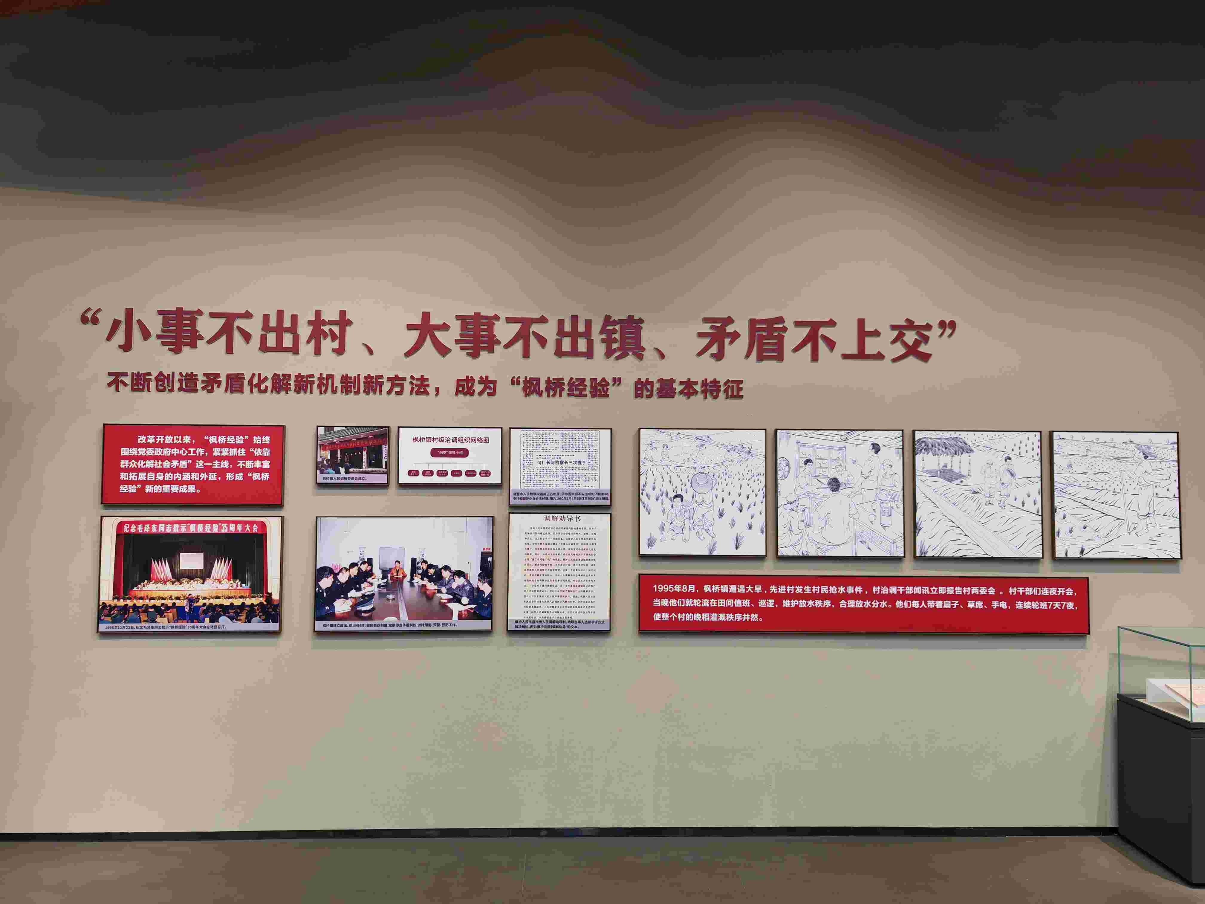 △改革開放以來,“楓橋經(jīng)驗(yàn)”不斷豐富和拓展。圖為楓橋經(jīng)驗(yàn)陳列館里的相關(guān)內(nèi)容展示。(總臺央廣記者馬喆拍攝)