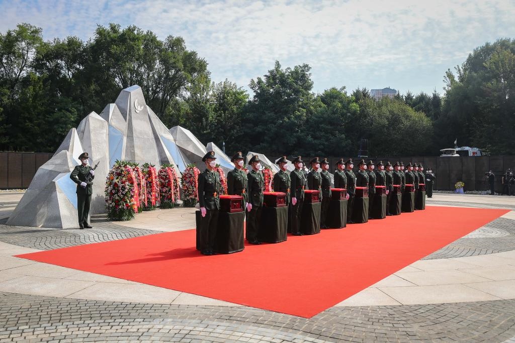 2022年9月17日,第九批在韓中國(guó)人民志愿軍烈士遺骸安葬儀式現(xiàn)場(chǎng)。