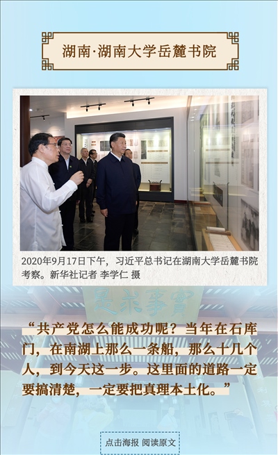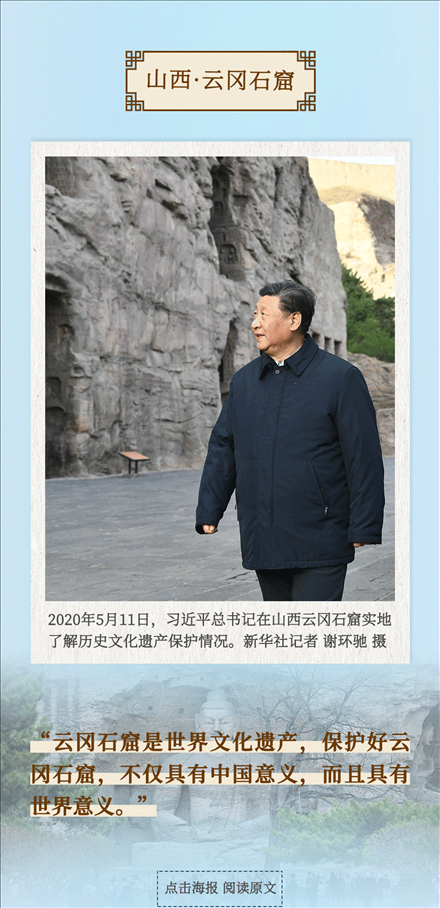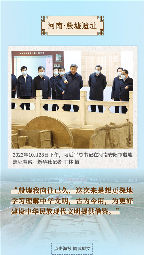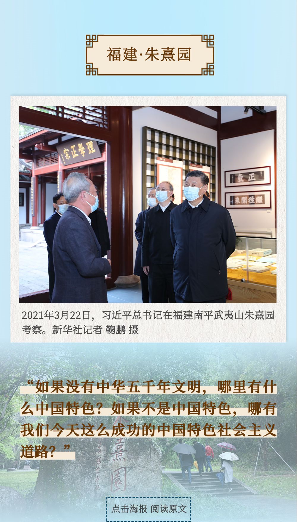 從四川三蘇祠到河南殷墟遺址,從山東孔府、孔子研究院到湖南大學岳麓書院,從甘肅嘉峪關關城到福建朱熹園,從山西云岡石窟到廣東潮州古城……考察文化遺產(chǎn)、探尋文明根脈,帶著深厚的歷史感,習近平總書記的“文化足跡”遍及全國。