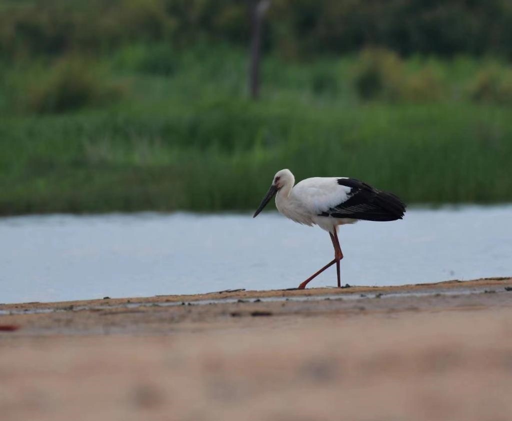 在小河口村附近拍攝到的東方白鸛。(受訪者供圖)