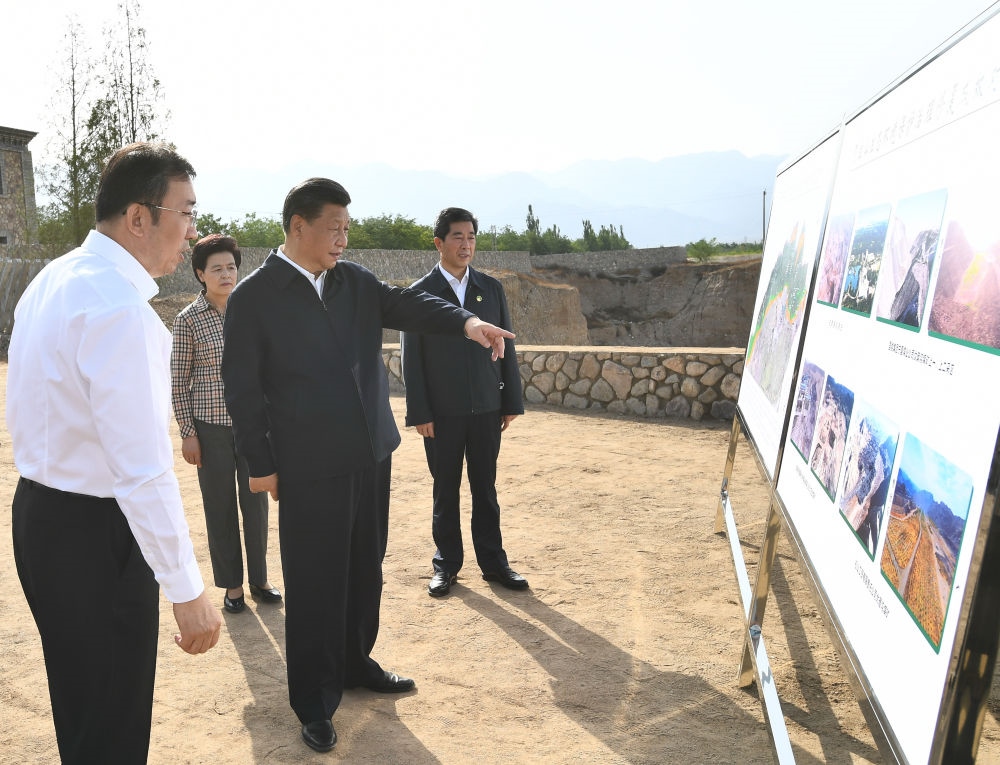 2020年6月9日下午,習(xí)近平在寧夏銀川市西夏區(qū)賀蘭山東麓,聽取賀蘭山生態(tài)保護(hù)和環(huán)境綜合整治情況匯報(bào)。