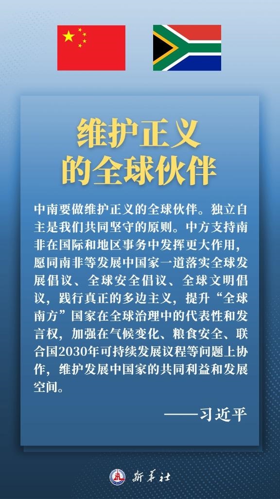 當(dāng)?shù)貢r(shí)間8月22日上午,正在南非進(jìn)行國事訪問的國家主席習(xí)近平在比勒陀利亞總統(tǒng)府同南非總統(tǒng)拉馬福薩會談。兩國元首就新時(shí)代中南關(guān)系發(fā)展以及共同關(guān)心的國際和地區(qū)問題深入交換意見,達(dá)成重要共識,一致同意,攜手推動中南全面戰(zhàn)略伙伴關(guān)系不斷邁上新臺階,攜手構(gòu)建高水平中南命運(yùn)共同體。