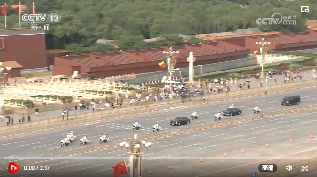 兩國元首回到檢閱臺觀看儀仗隊分列式。