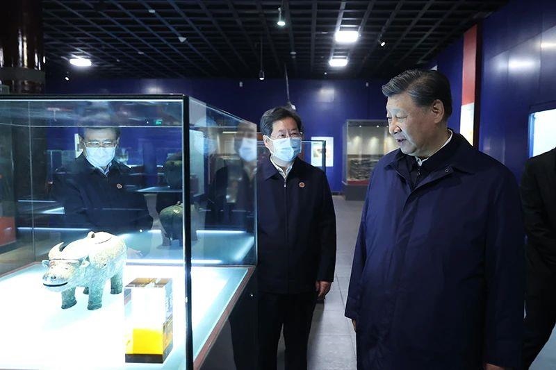 △2022年10月28日,習近平總書記在河南安陽市殷墟博物館考察。