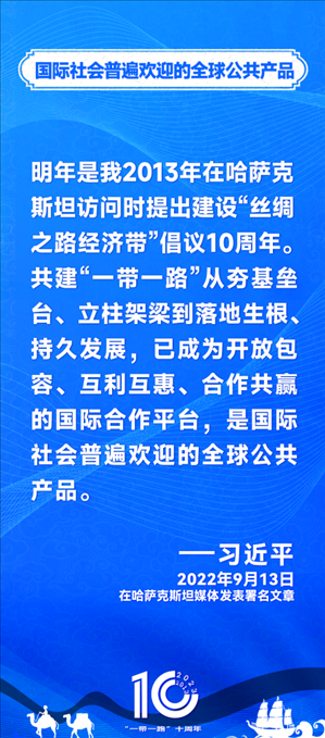 10年前,習近平主席提出共建“絲綢之路經(jīng)濟帶”和“21世紀海上絲綢之路”,即共建“一帶一路”倡議。過去10年來,習近平主席在多個場合發(fā)表講話和署名文章,為世界描繪了共建“一帶一路”互聯(lián)互通、合作共贏的宏偉藍圖。