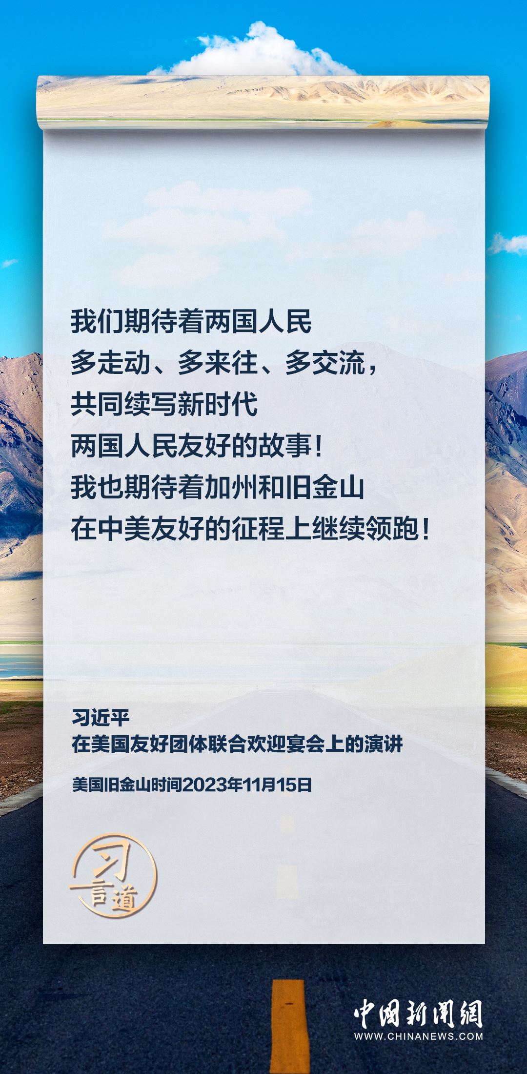 當(dāng)?shù)貢r(shí)間11月15日,中國(guó)國(guó)家主席習(xí)近平在美國(guó)舊金山出席美國(guó)友好團(tuán)體聯(lián)合歡迎宴會(huì)并發(fā)表演講。習(xí)近平在演講中從“我”和“我們”說起,提出中國(guó)主張、表明中國(guó)立場(chǎng)、展現(xiàn)大國(guó)擔(dān)當(dāng),話語擲地有聲。