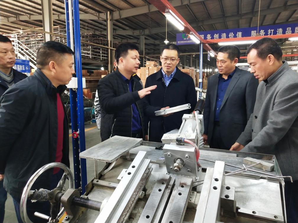 熊樹生(左三)在龍泉市一家企業(yè)車間內(nèi)介紹汽車空調(diào)冷凝器。受訪者供圖