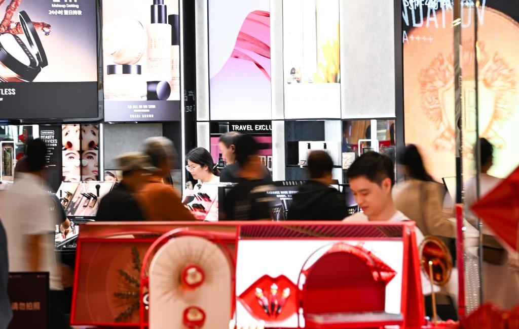 2023年10月28日,消費者在位于海南省??谑械暮?趪H免稅城內購物。新華社記者楊冠宇 攝
