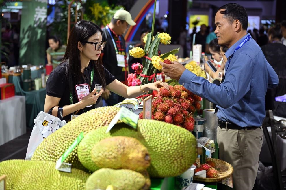 2023年12月14日,第26屆中國(海南)國際熱帶農產品冬季交易會展出的熱帶水果。新華社記者郭程 攝