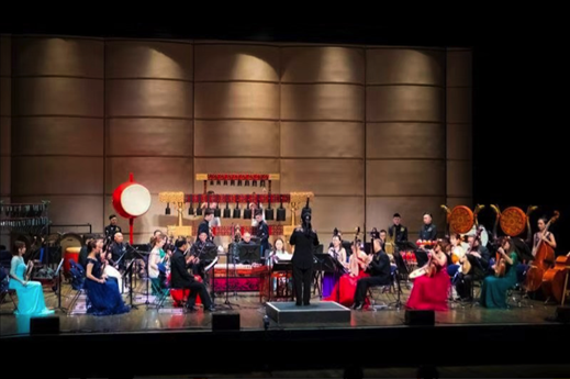 (▲2019年,來自湖北的“編鐘國樂”音樂會在美國俄亥俄州首府哥倫布市戴維森劇場上演)