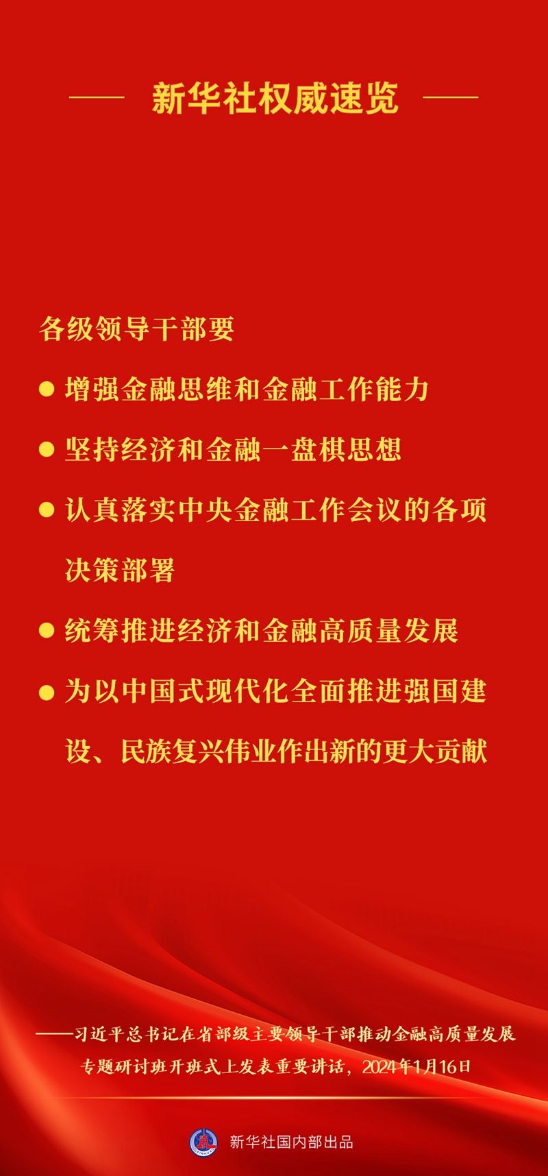 習(xí)近平總書記16日上午在省部級(jí)主要領(lǐng)導(dǎo)干部推動(dòng)金融高質(zhì)量發(fā)展專題研討班開班式上發(fā)表重要講話,一起來看講話要點(diǎn)。